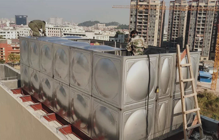 1、不銹鋼拼裝水箱由1*1的單張方形沖壓好的不銹鋼板拼裝焊接而成,與現(xiàn)代的建筑遙相呼應,具有時代感。